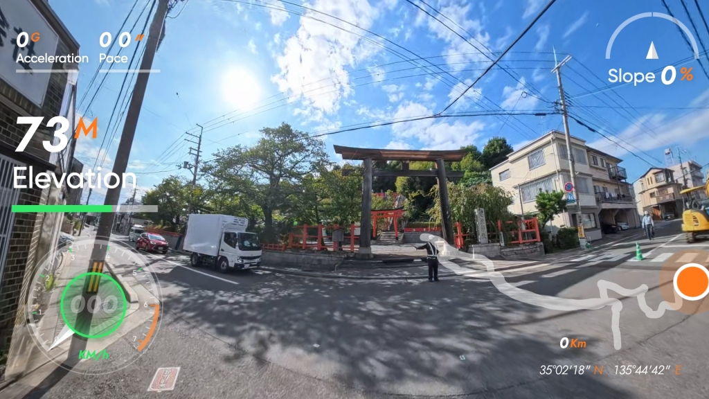 このカメラで撮影する際にApple Watchと連動させると、GPS情報を動画に重ねて表示できるらしいので、さっそく近所の船岡山城で試してきました。