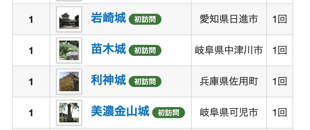 今回この「訪問したお城の一覧」のところに 初訪問 と表示されるようにしました。