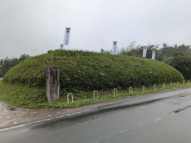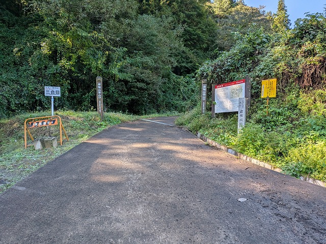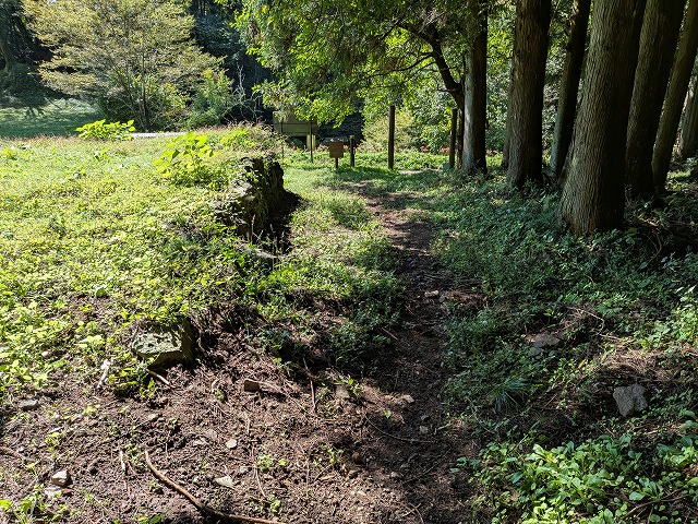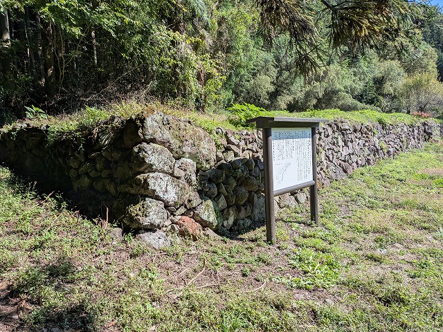 そうこう歩いていると麓に案内板と石垣らしきものが見えてきました。