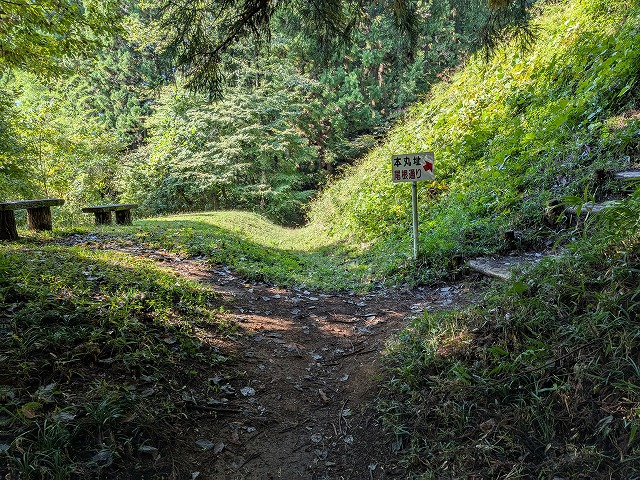 本丸は岩櫃山の中腹標高593mに立地し、東西140m南北35mの広さがあるとのこと。さすが真田の城と感心しながら北西の虎口に向かいます。