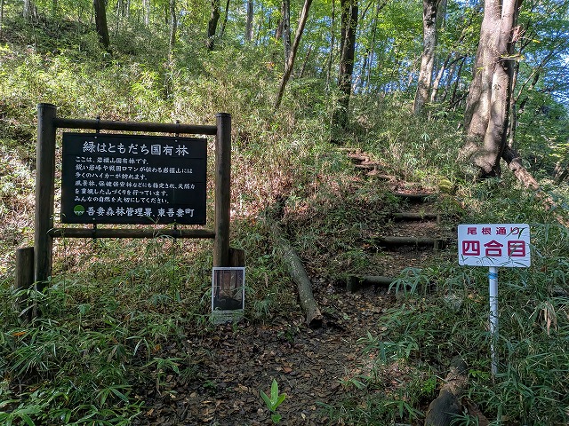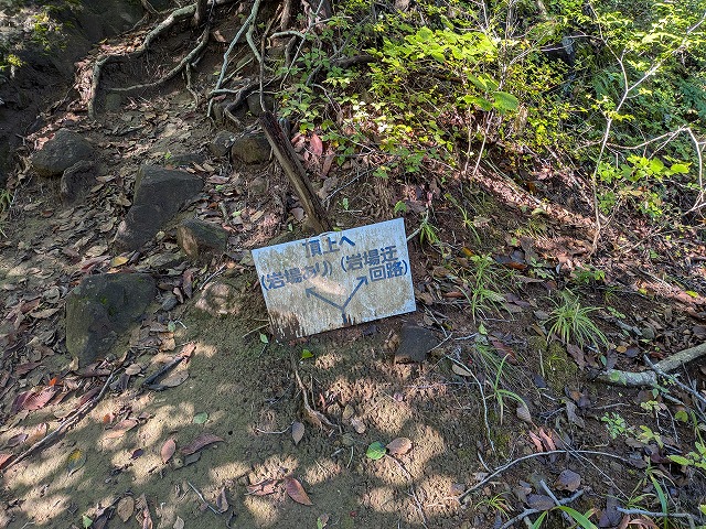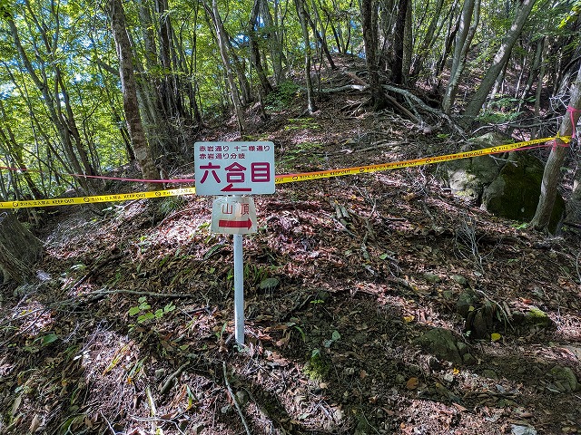 登山者の方はここから山頂方面に向かいますが私は山頂には向かわず左矢印の赤岩通り方面へ進みます。ここから登山の人も見えず一人旅です。