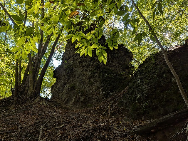 あとで本の写真で知りましたがこの場所で石垣ばかり見入ってしまい頭上にきれいな岩櫃山が見えるのをうっかり見過ごしてしまいました。