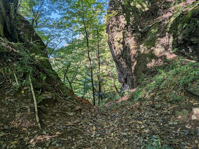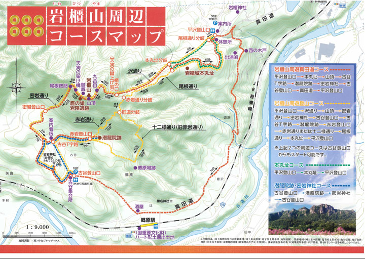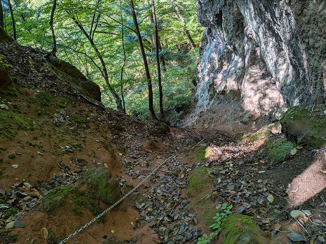 - 岩櫃城の中心部に行きたいが山の反対側にある潜龍院跡の石垣も見たい。徒歩だと真田道で大回りするか鎖場のある赤岩通りを通る必要がある