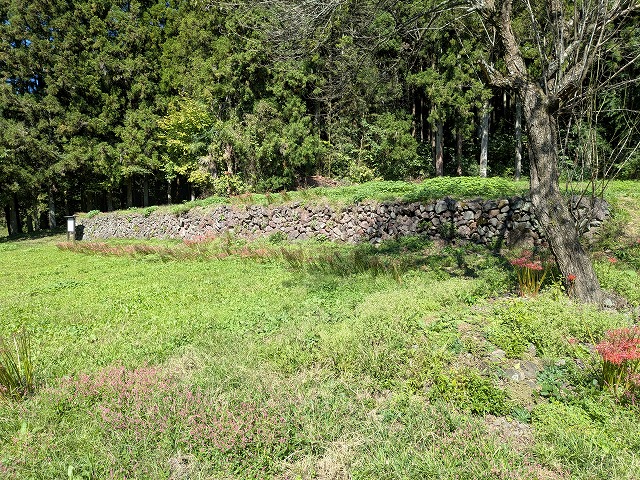 石垣の周りにヒガンバナが咲いていました。
