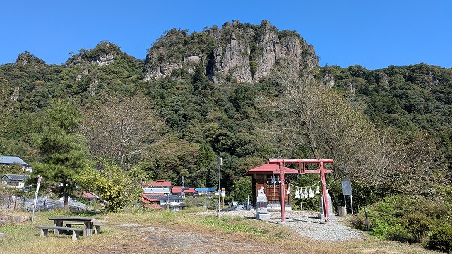 潜龍院跡から少し歩いて岩櫃山の絶好の写真スポットである密岩神社に来ました。