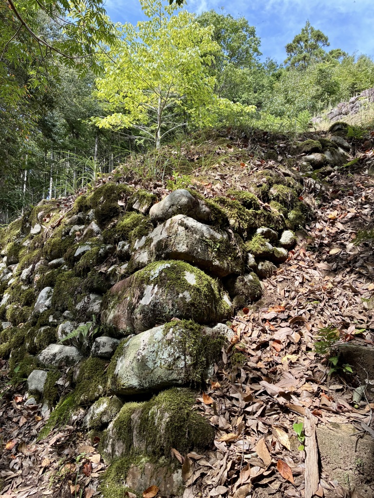 赤木城はのちの築城名人藤堂高虎の初期の築城とされ、石垣は野面積、隅部は初期の算木積みとなっています。築城名人となる萌芽を目の当たりにできます。