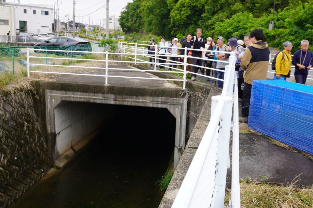 なんてことのない水路にしか見えませんが、これも古地図に川として描かれており総構えの一部というお話がありました。