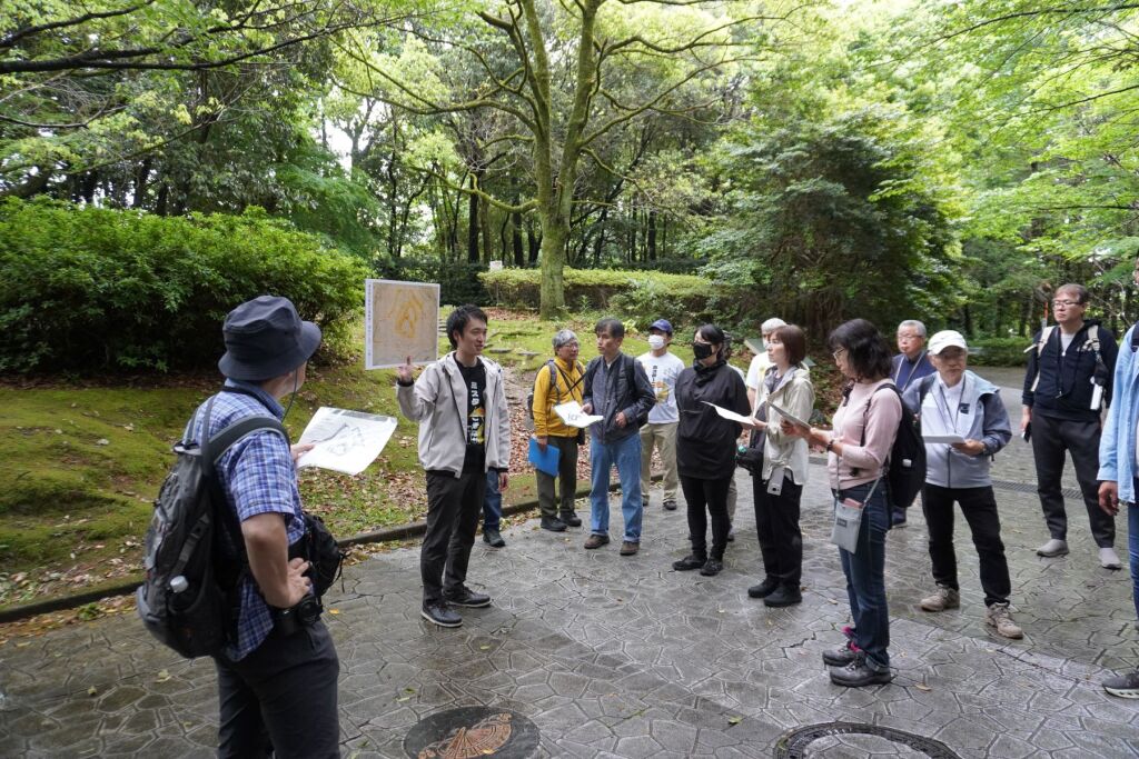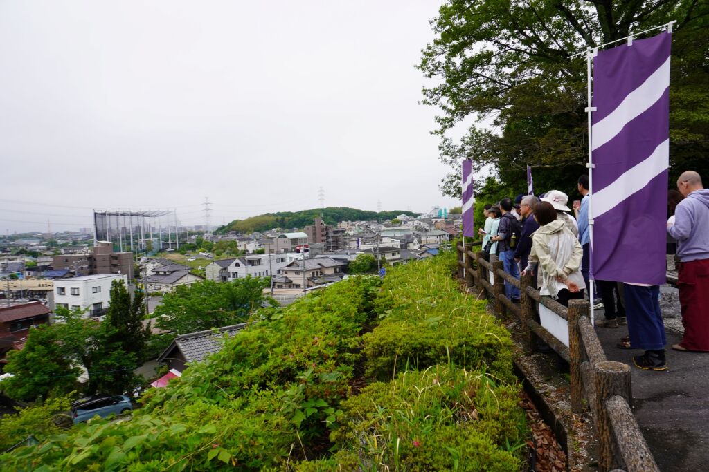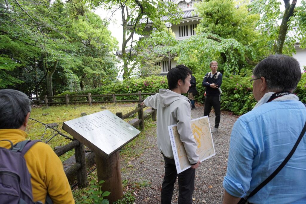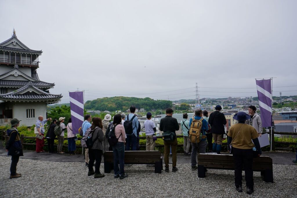 ここからは5月に開催された、城たび当日の様子です。現地での座学の後に岩崎城から見える景色について解説していただきました。