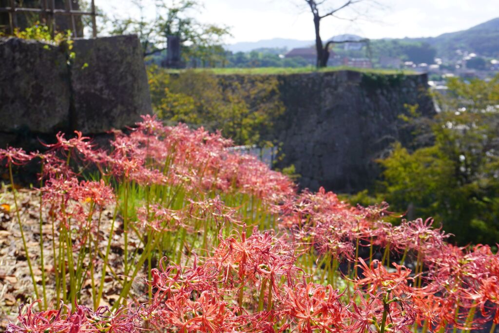 この頃は城内に彼岸花が多く咲いていました。桜で有名な津山城ですが、彼岸花と石垣の取り合わせも悪くないですね。