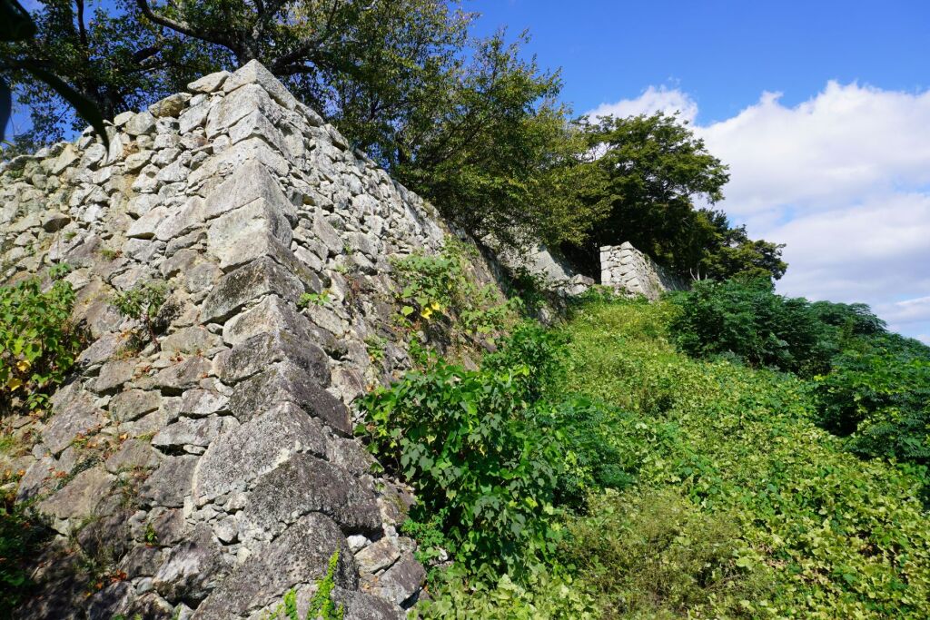 写真だとわかりにくいですが、草に埋もれた部分はかなりの高低差がある絶壁で、よくこんな場所にこれだけの石垣を積んだなと気が遠くなりました。