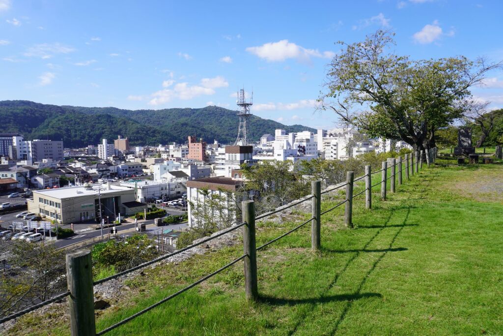登った先では、駅方面の市街地がよく見渡せます。それほど高く登ってきたつもりはありませんが、早速良い景色を堪能できました。