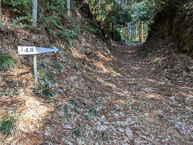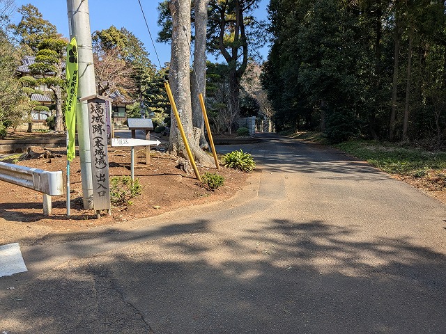 お城の入口は公民館より100mほど歩くと案内板がでてきました。木の板というのが何ともいいです。