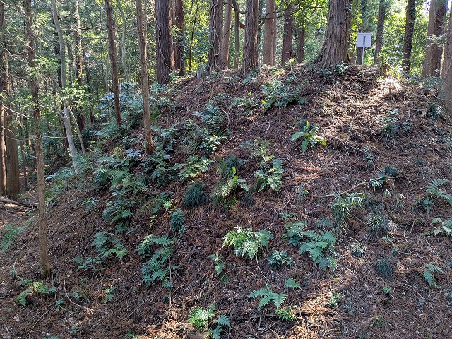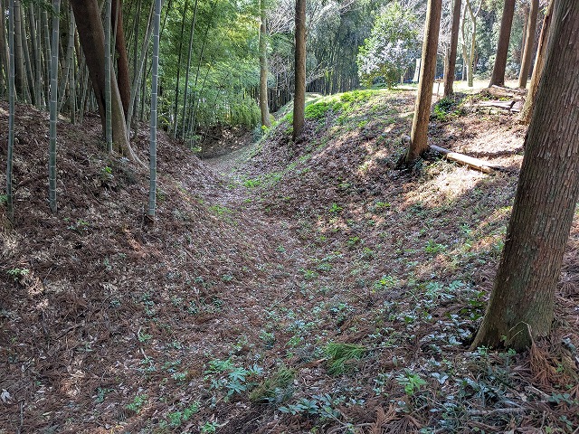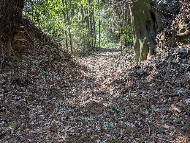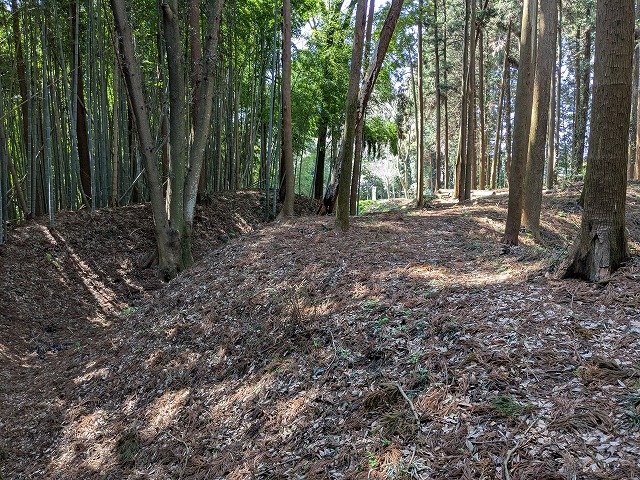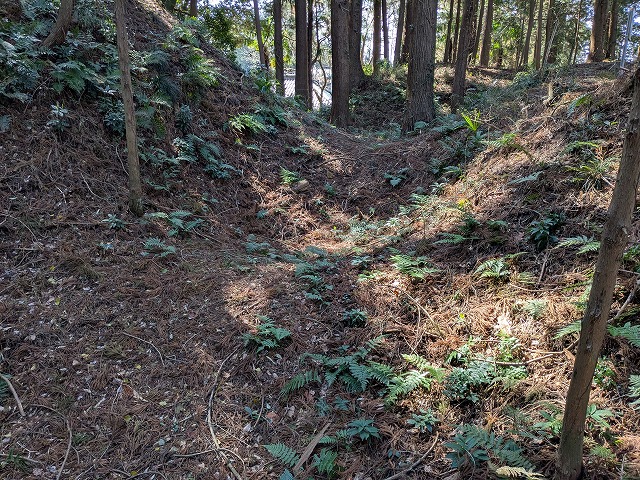 堀は木々が堆積してそれほど深くないですが曲輪の輪郭がわかりやすいです。