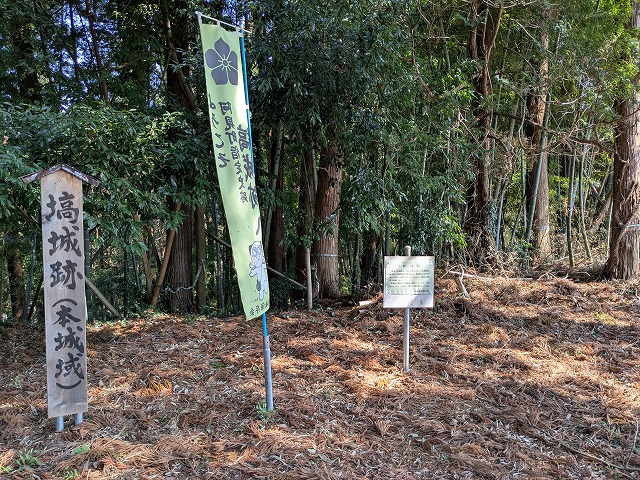 パンフレットに載っていましたが、鹿島神社周辺には城郭遺構と見られる土塁と切岸があり、未加工の部分も多く築城途中で放棄されたのではないかとのことです。