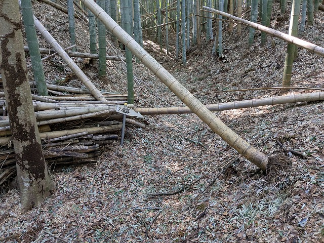 鹿島神社経由で北の郭に向かいましたが、その行き先が写真のとおり倒竹で遮られています。