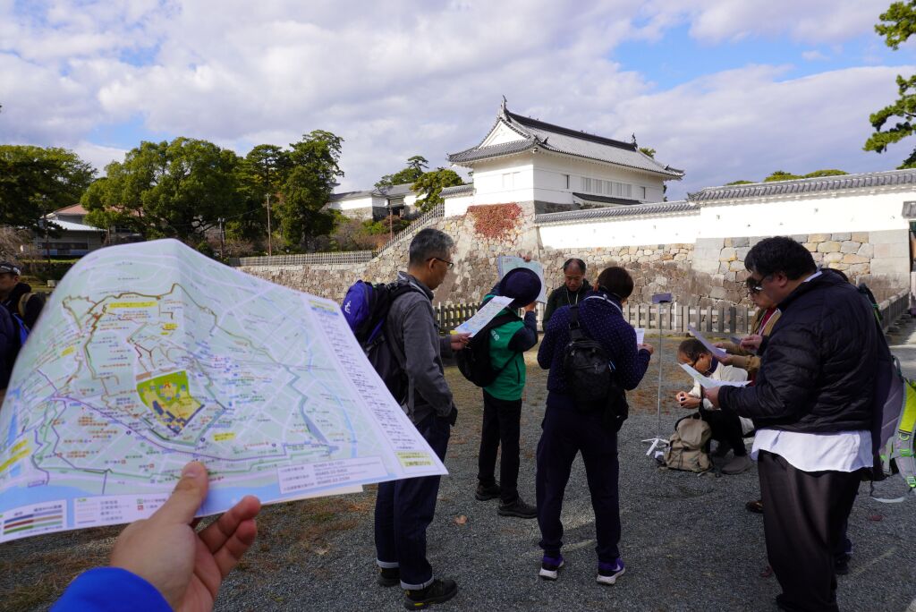 集合場所は二の丸内の観光案内所でした。受付後、地図を受け取ってルートを確認します。