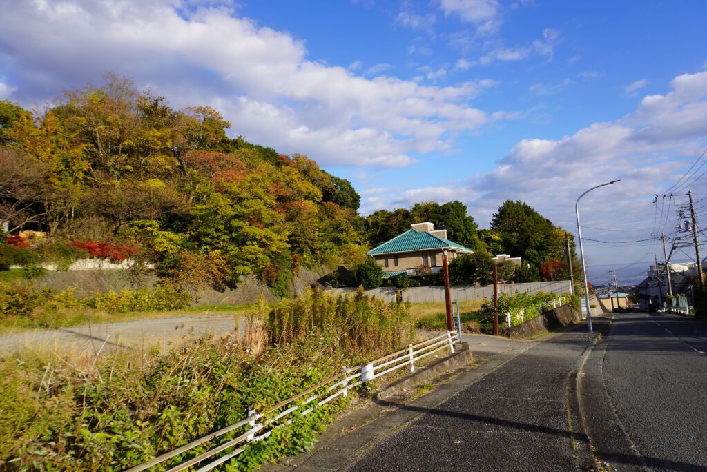 この道の左側から急な崖地形になっていて、この崖に沿って総構えが作られていたそうです。つまり、総構えのルートが後世にそのまま道路になっている訳で、ここからは総構え沿いに進みます。