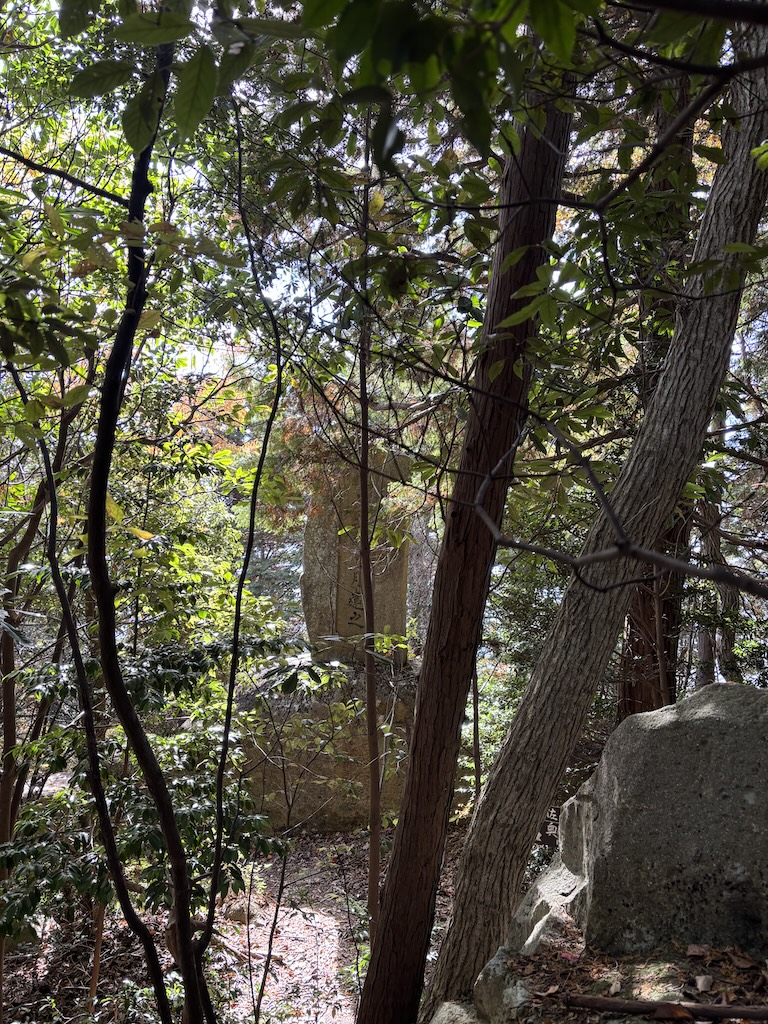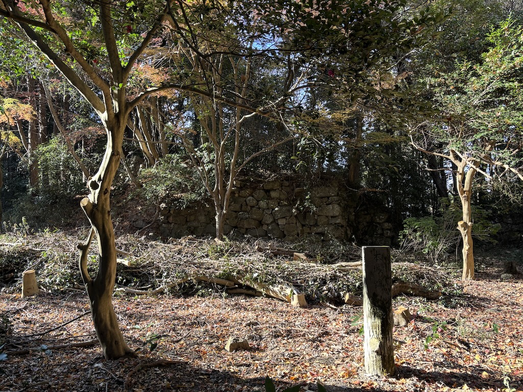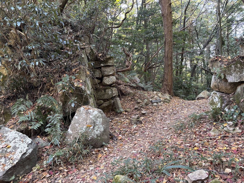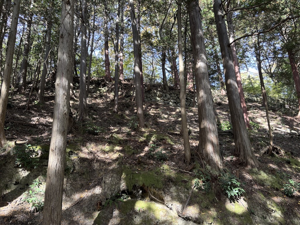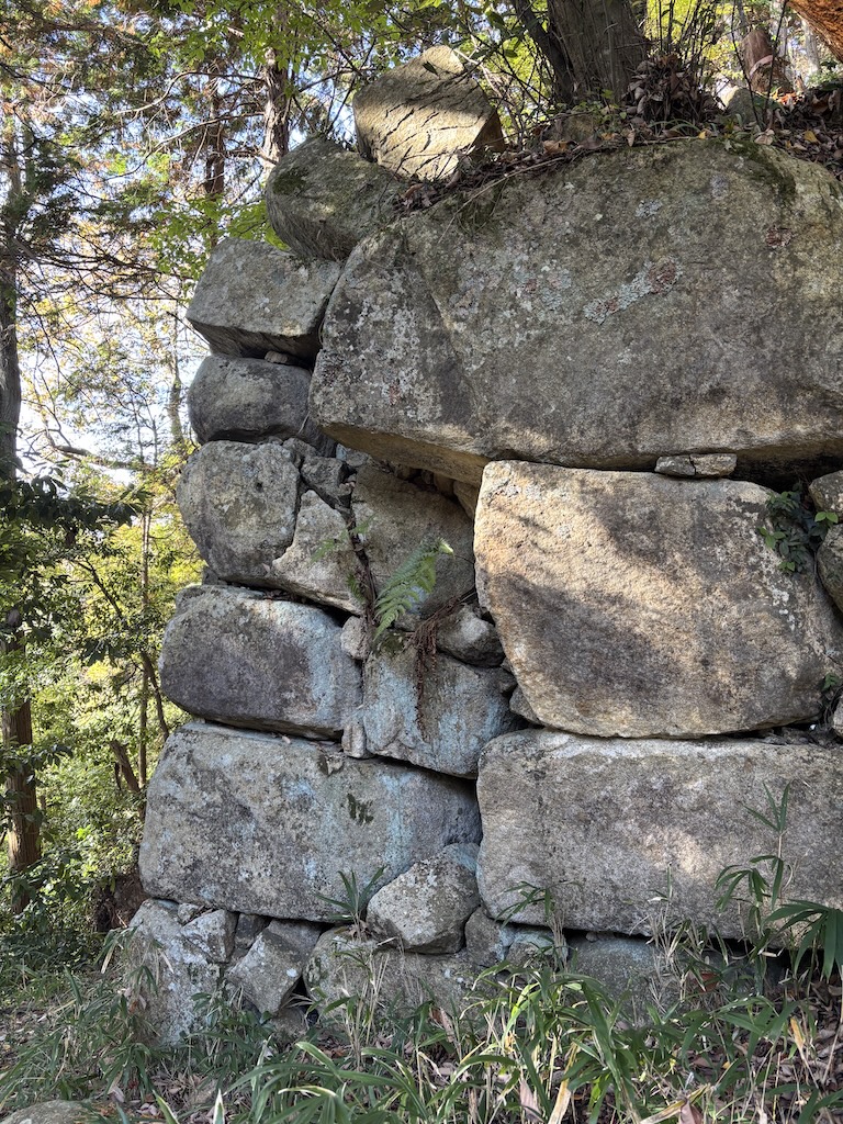 あちこちに、石垣が崩れたような、大きな石が集積しており周囲には木が生い茂っている場所がありました。