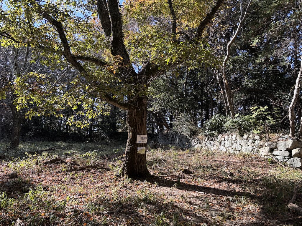 わかりづらいですが、伝池田丸の建物礎石跡、が確認できます。