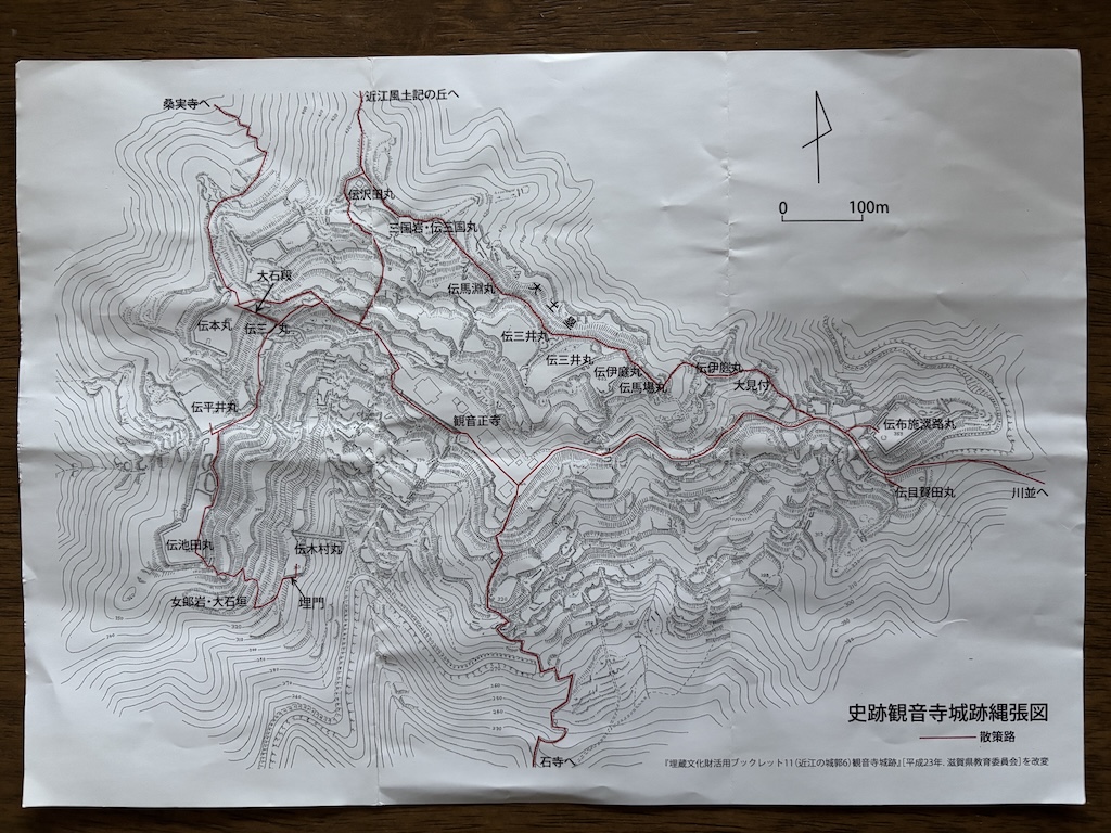 縄張り図は観音寺城域のみで、博物館からの登城ルートは書かれていません。