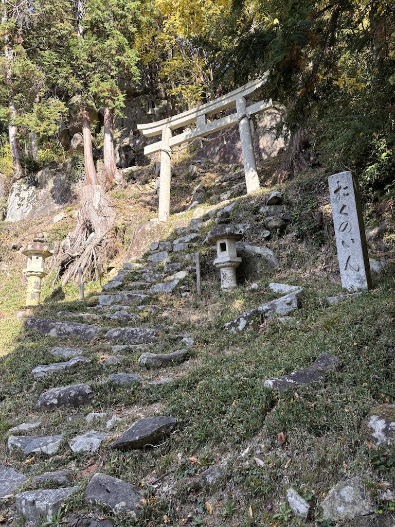 段差の大きな階段含め、岩や木の根、枯葉も積もった上り道を息を弾ませながら歩きました。
