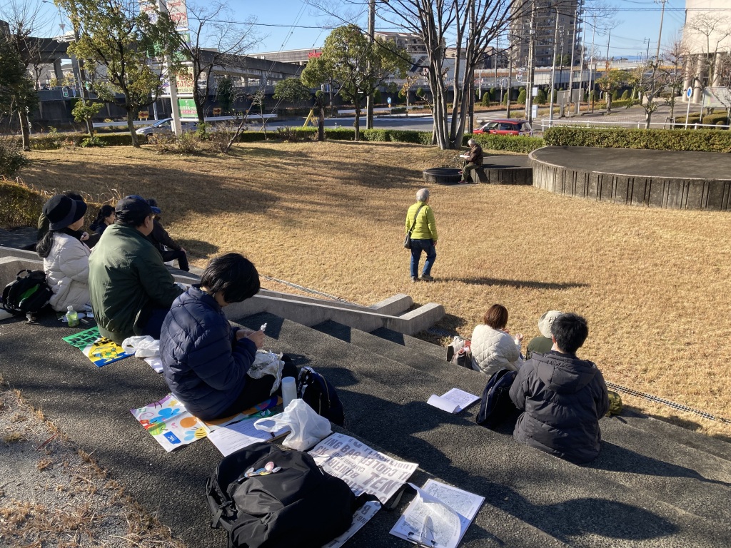 途中で休憩を取りました。東部市民センターにある広場で休憩です。