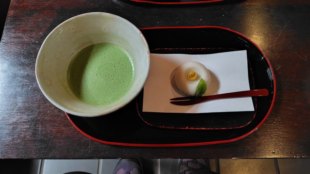 上生菓子とお抹茶のセットは600円(2025年12月時点)。