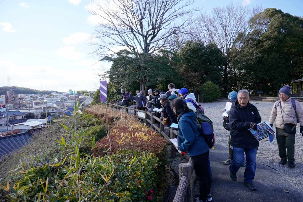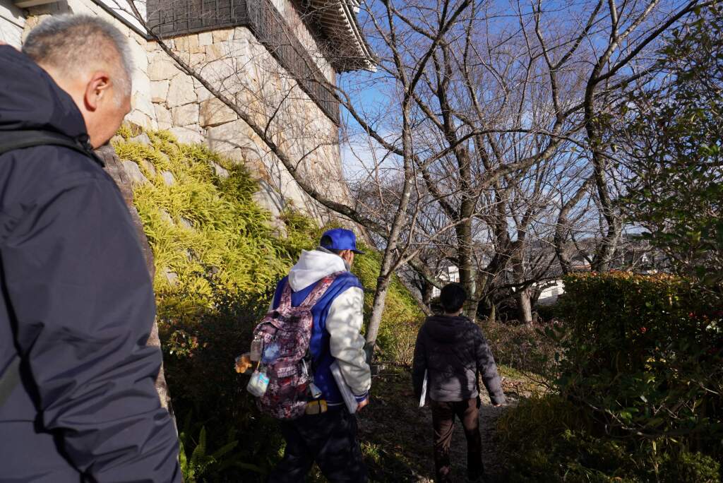 歴史記念館で休憩後、模擬天守の南側へ降りて記念撮影を行いました。