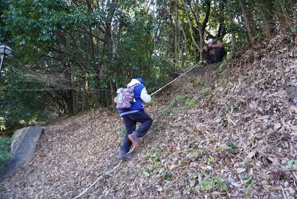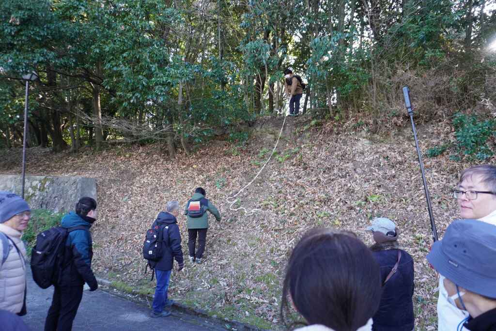 幹事のpriusイワさんがロープを用意してくださり、今回は特別に土塁を登る体験をさせていただきました。