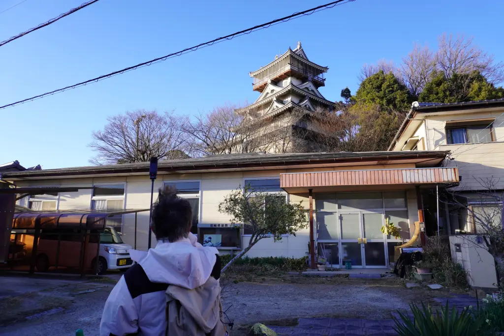 戻る途中の住宅地からも、岩崎城がよく見えました。