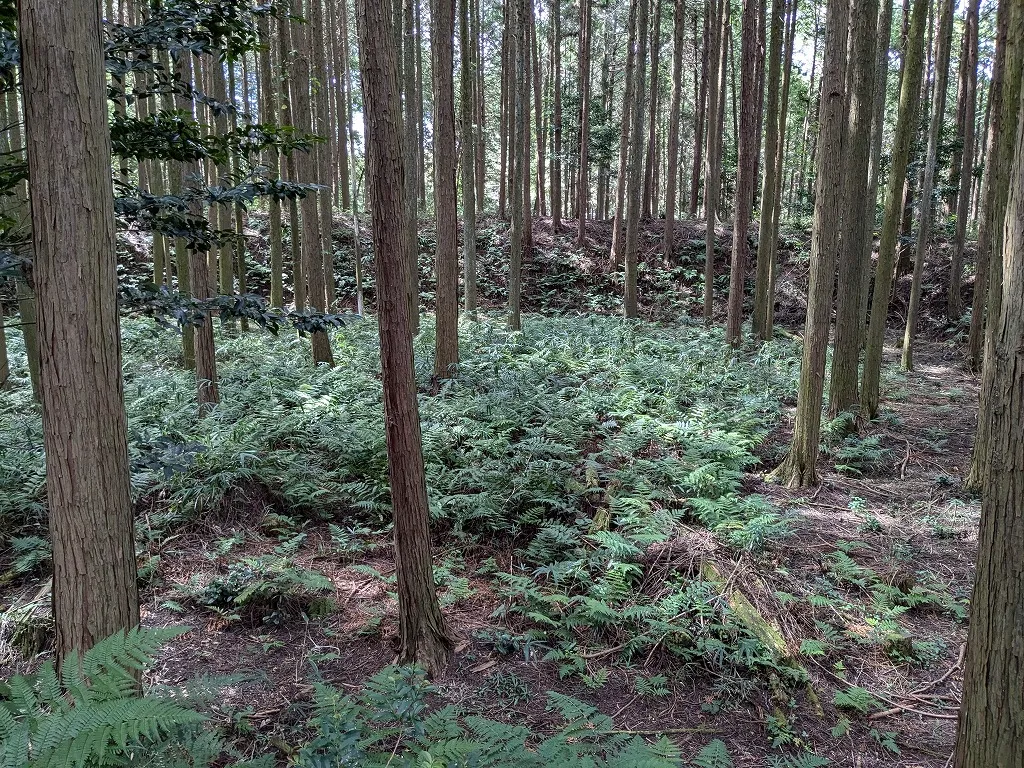 甲賀の城館群の基本構造は一辺30~50mの方形単郭の小規模な構造。村のすぐ裏山にこのような小規模な城館が多数存在しました。