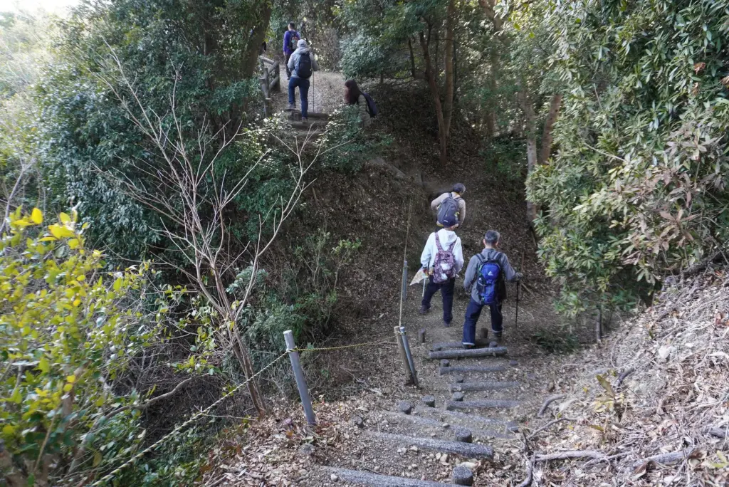 追手門跡を見たら、今まで下ってきた道を一気に登っていきます。
