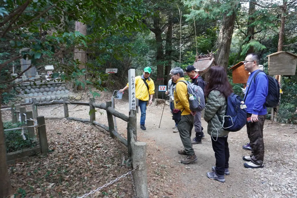 途中にある窪みには水が溜まっており、三日月井戸と呼ばれています。