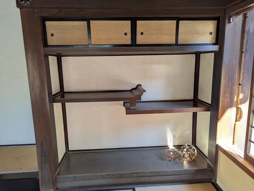 ここの天袋が鳳凰と唐獅子の障壁画だった時代があったのかもしれないと妄想してわくわくしました。なお、サイズはだいたい合っているような感じでした。